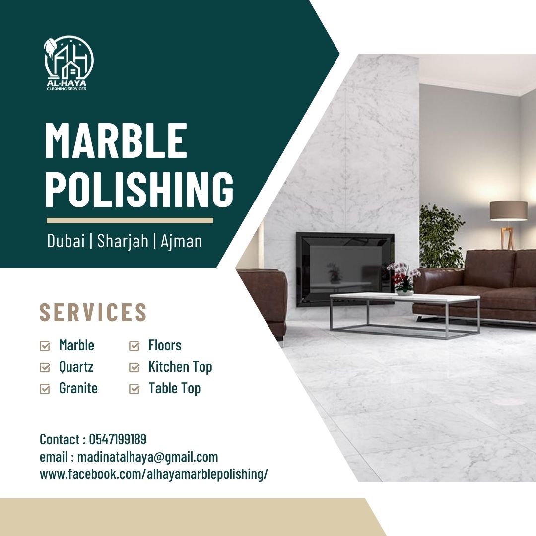 We are providing marble polishing services for all kind of marble floors, kitchen tops, table tops for all commercial and residential sites in all over the UAE. We’re expert in marble polishing, marble restoration, marble crystallization and marble scratch removing.